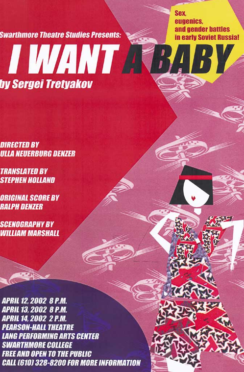 Sex, eugenics, and gender battles in early Soviet Russia! That’s the cheery blurb on the handbill of Swarthmore College’s 2002 production of I Want a Baby by Sergei Tretyakov.